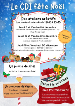 Un concours de dessin sur le thème « Un Noël magique ». Vote au CDI jusqu’au 13 décembre avec des lots à gagner pour les 3 premiers !