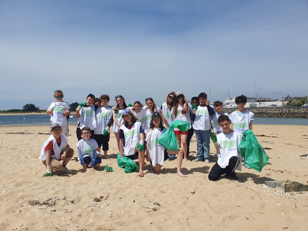Afin de participer à l’effort de protection des plages et de l’océan les élèves ont passé l’après-midi à la plage pour faire un grand nettoyage de la plage d’Etel et ils se sont rendus compte qu’il y avait de nombreux petits morceaux de filet et d’autres déchets. Les élèves repartent fiers d’avoir participé à une action concrète et positive pour l’environnement.