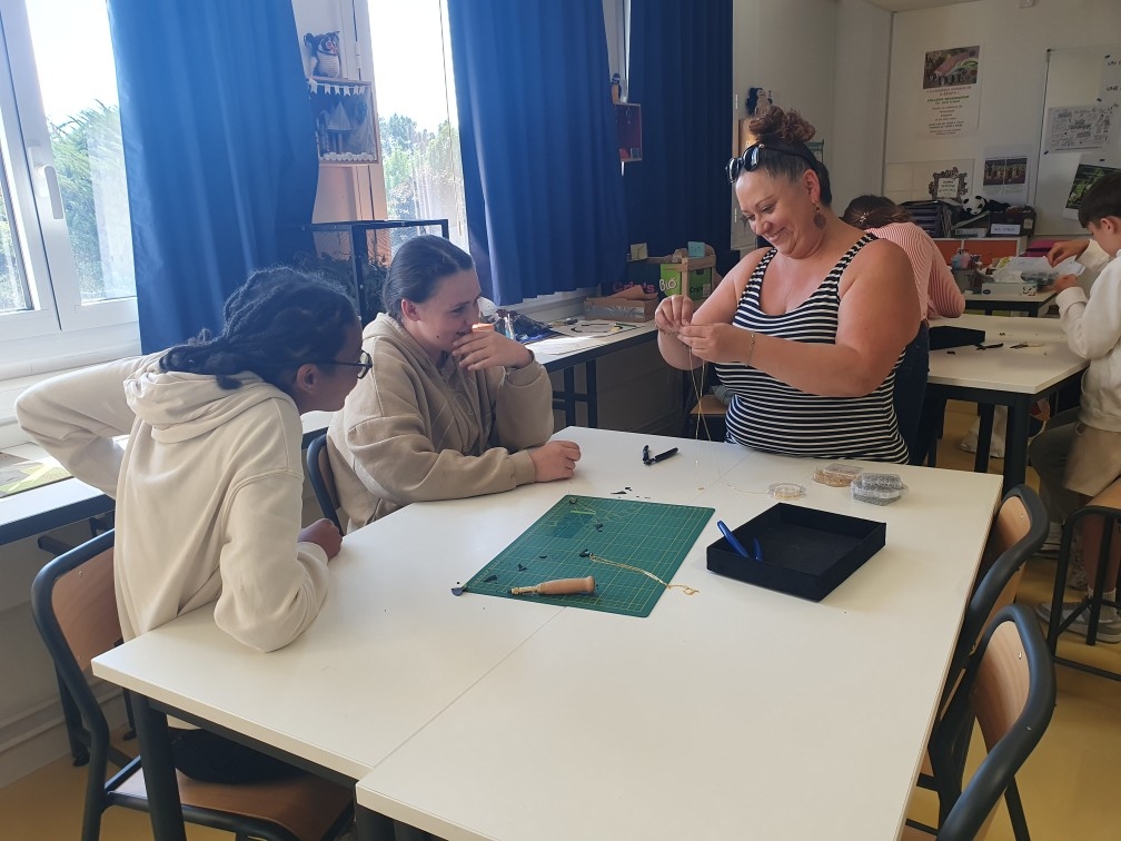Le jeudi 24 mai, dans le cadre de la BeaumaVerte les classes de 4e et les 5eB et C ont été sensibilisées à l’environnement avec la création de bijoux composés de matériaux recyclés. Marie Gabrielle, intervenante pour la journée leur a permis de faire des réalisations avec des chambres à air de vélo. Ils sont tous repartis avec soi-un bracelet, soit un porte-clef ou encore un collier. Cela leur a permis de voir qu’ils pouvaient recréer des objets à partir de matériaux qu’ils ne soupçonnaient pas forcément. Cela n’a pas toujours été facile, ils ont travaillé la motricité fine, la concentration pour la réalisation de très jolis bijoux. Les mamans ont peut-être pu profiter de ce travail dimanche pour la fête des mères…