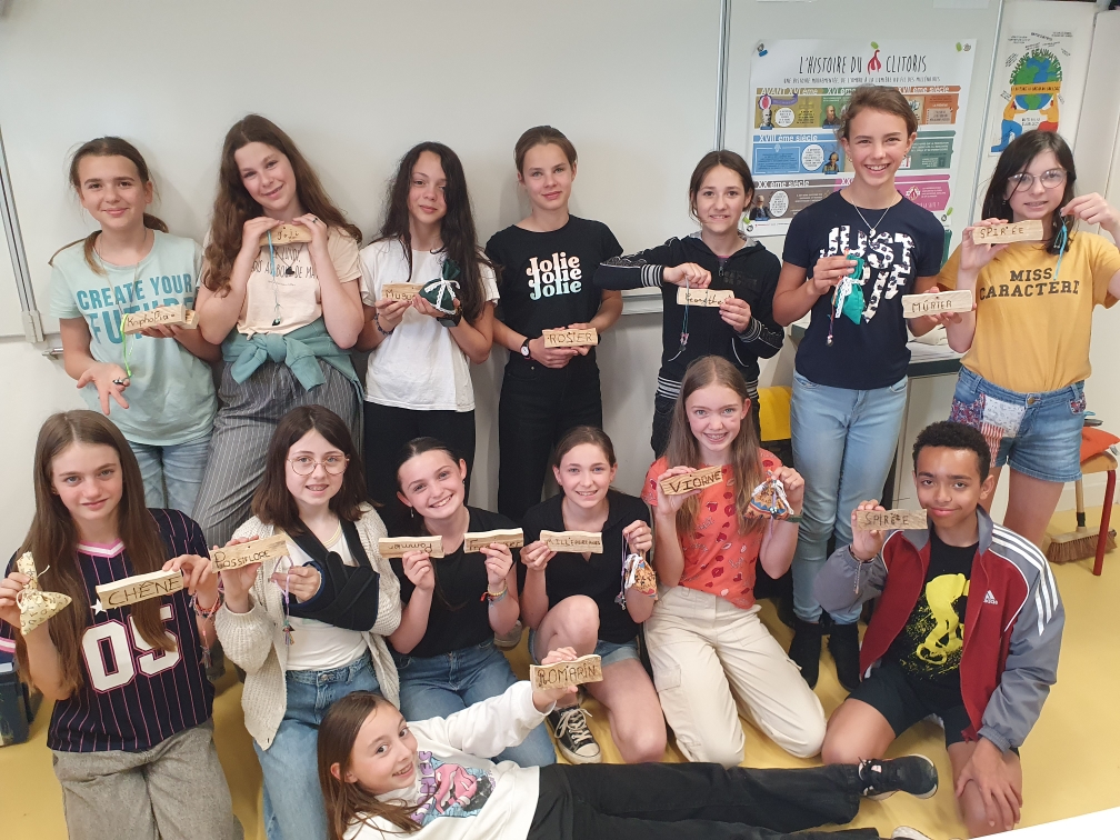 Le vendredi 25 mai les élèves du club nature se sont réunis tout l’après-midi. Après une préparation en amont, où ils ont pu faire de la classification et de l’identification des plantes du coin nature. L’objectif est que les visiteurs puissent découvrir les plantes présentes ainsi que leurs noms. Un parent d’élève, leur a confectionné, des petites plaquettes de bois qu’ils ont pu pyrograver : chaque plante aura dorénavant un nom. Ils ont également pu faire une visite à la boutique solidaire du collège. Les élèves de 4A les ont accueillis pour leur faire découvrir leur projet, certains sont même repartis avec quelques emplettes…