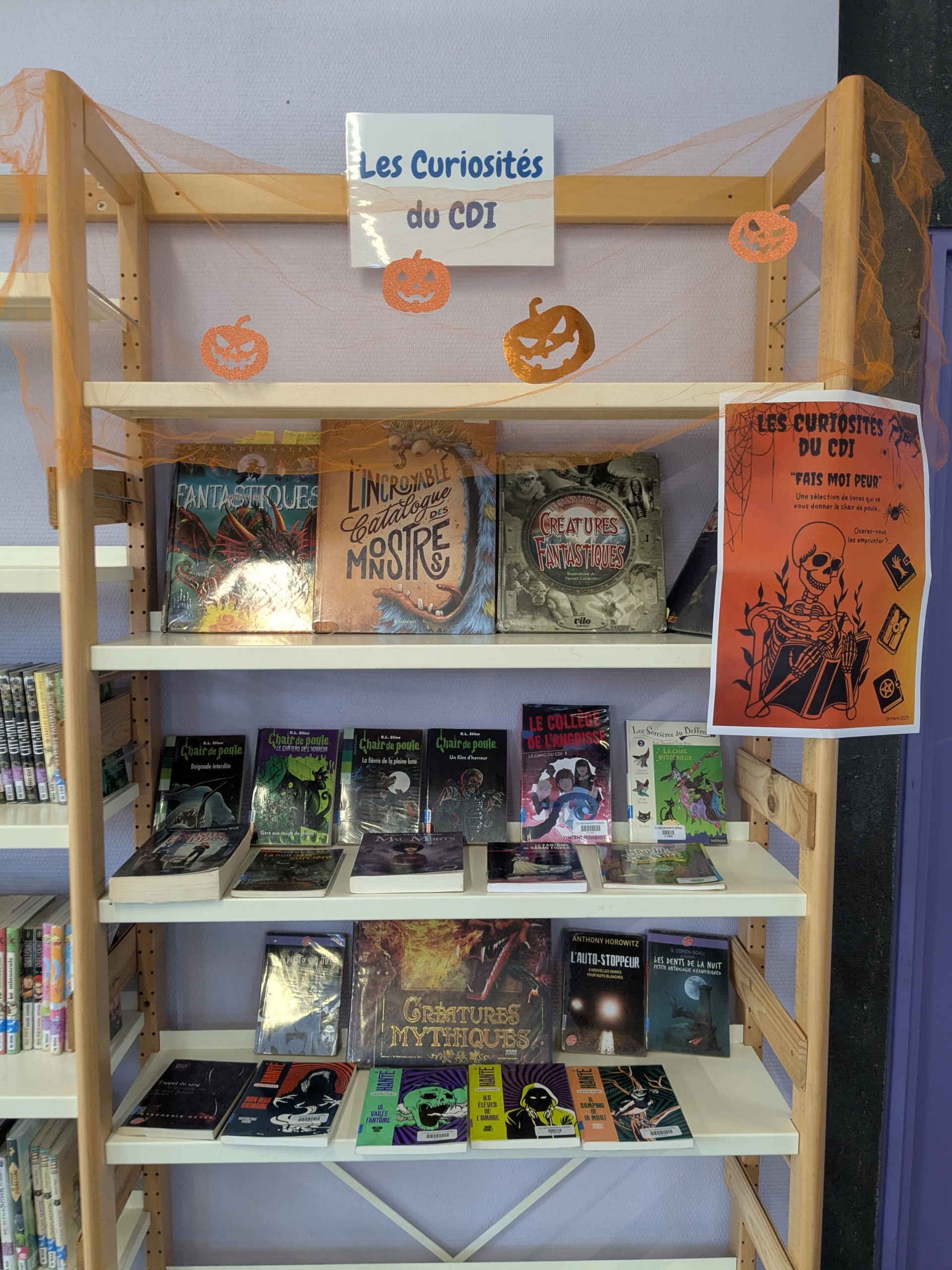 L’esprit d’Halloween s’invite au CDI ce mois-ci ! Les « Curiosités du CDI » proposent aux élèves des histoires qui donnent la chair de poule ! Oseront-ils les emprunter ?…