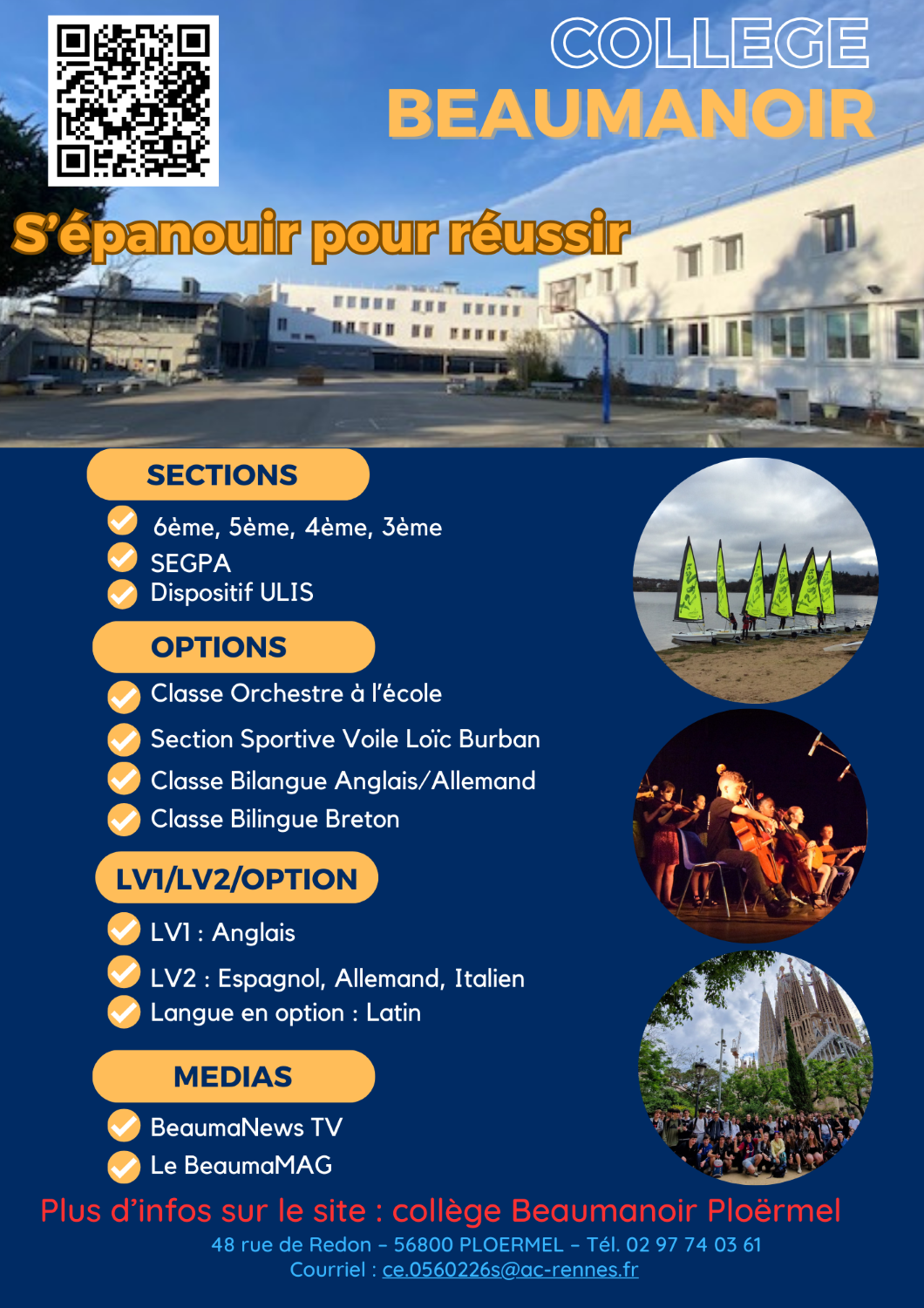 Le collège Beaumanoir accueille les jeunes de la 6e à la 3e en série générale ou en section d’enseignement général et professionnel adapté. Deux dispositifs d’unités localisées pour l’inclusion scolaire viennent compléter l’offre de formation. La diversité des publics est une des richesses de l’établissement.