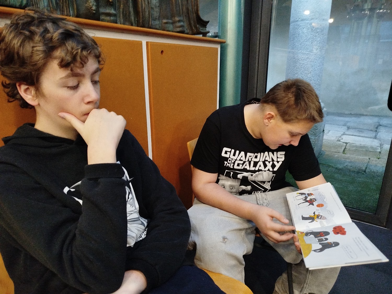 Visite des archives : salle de consultation avec exposition de documents concernant le combat des Trente |